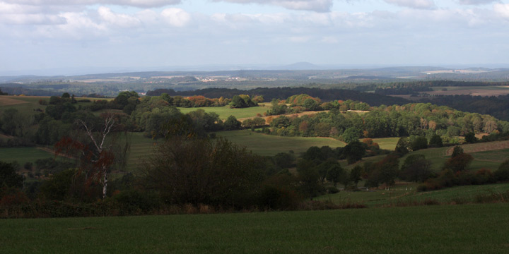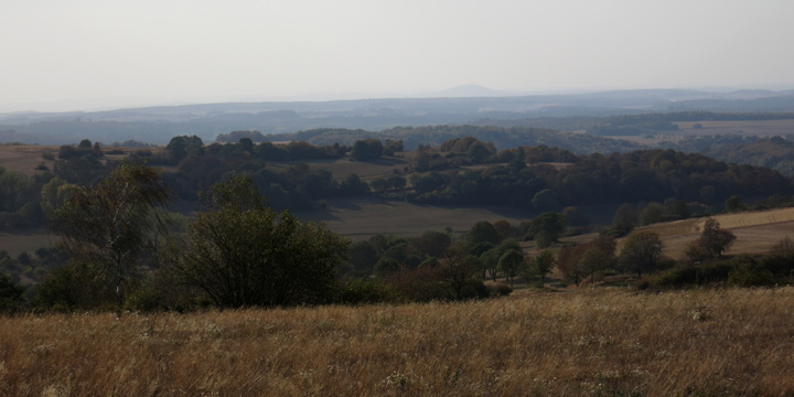 unten: Blick nach Westen mit Dünsberg am Horizont (OSM). Kamera: PowerShot S110, 26mm (max.Zoom).