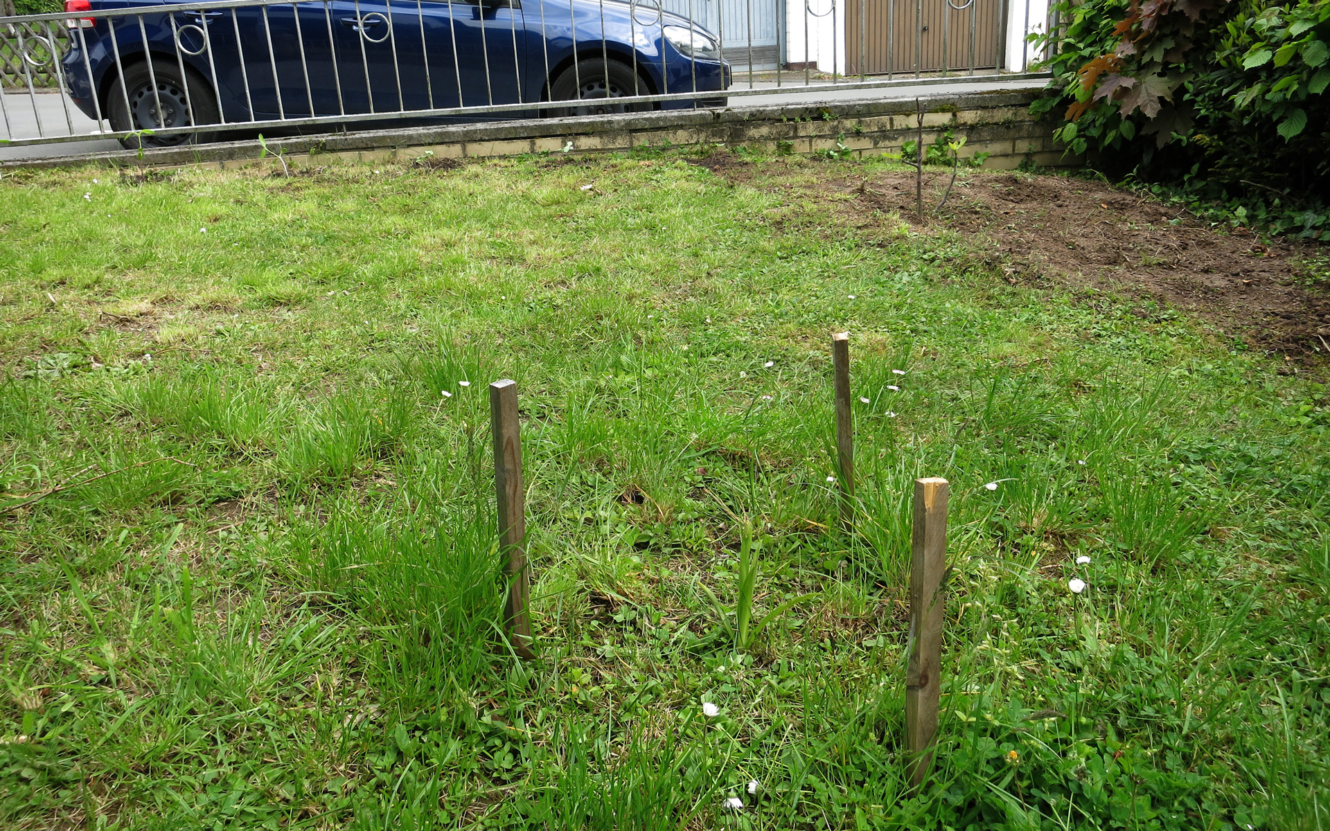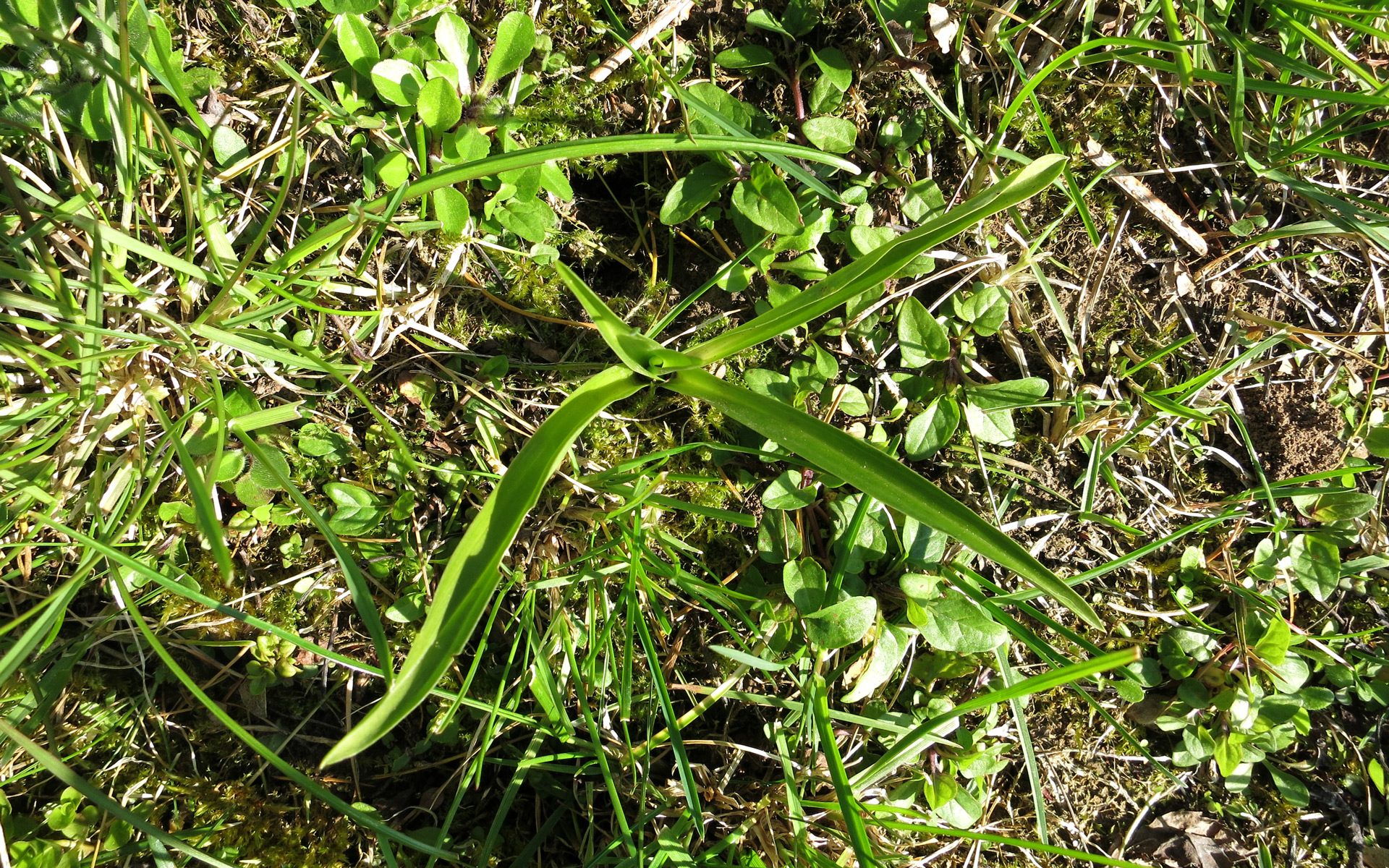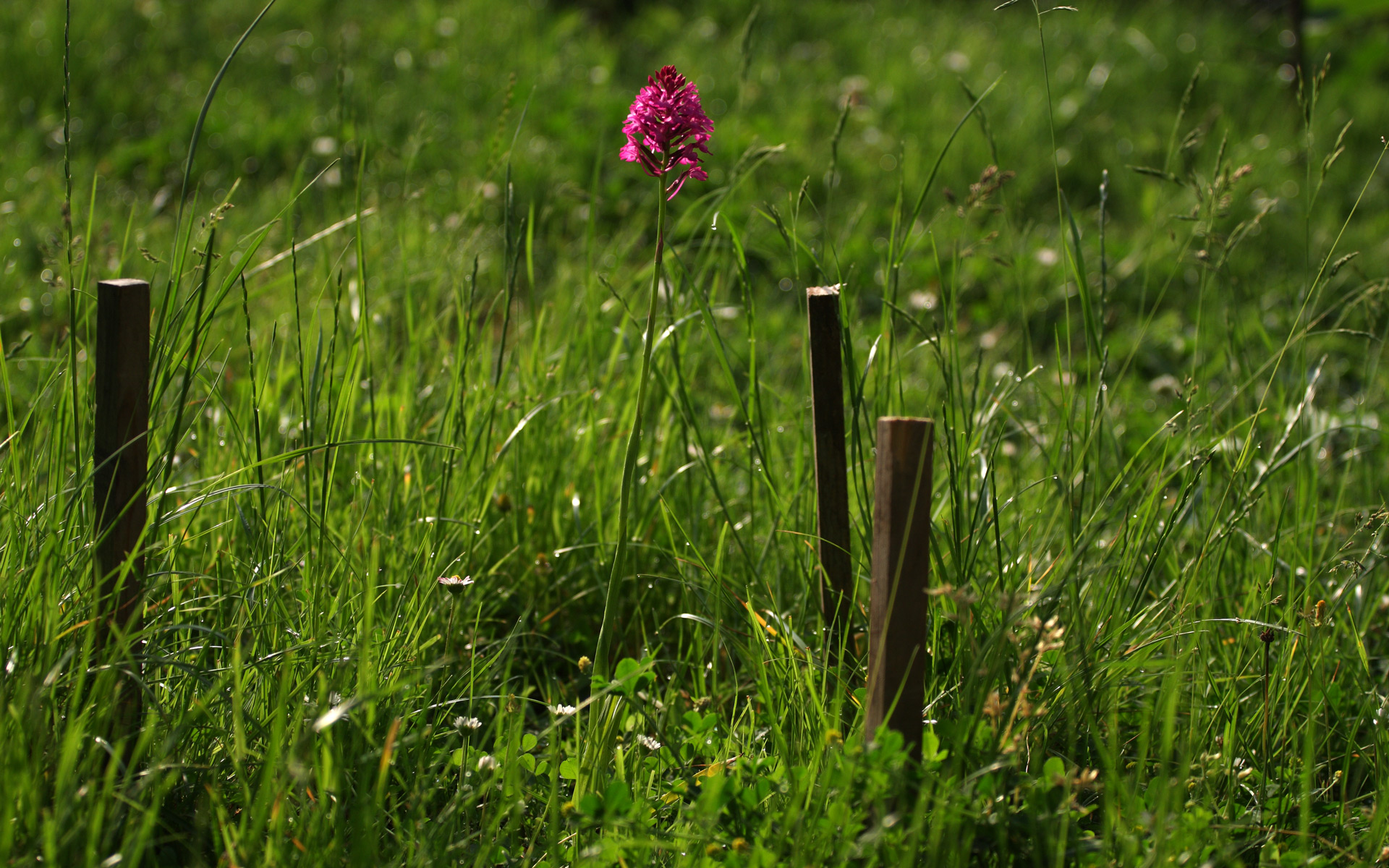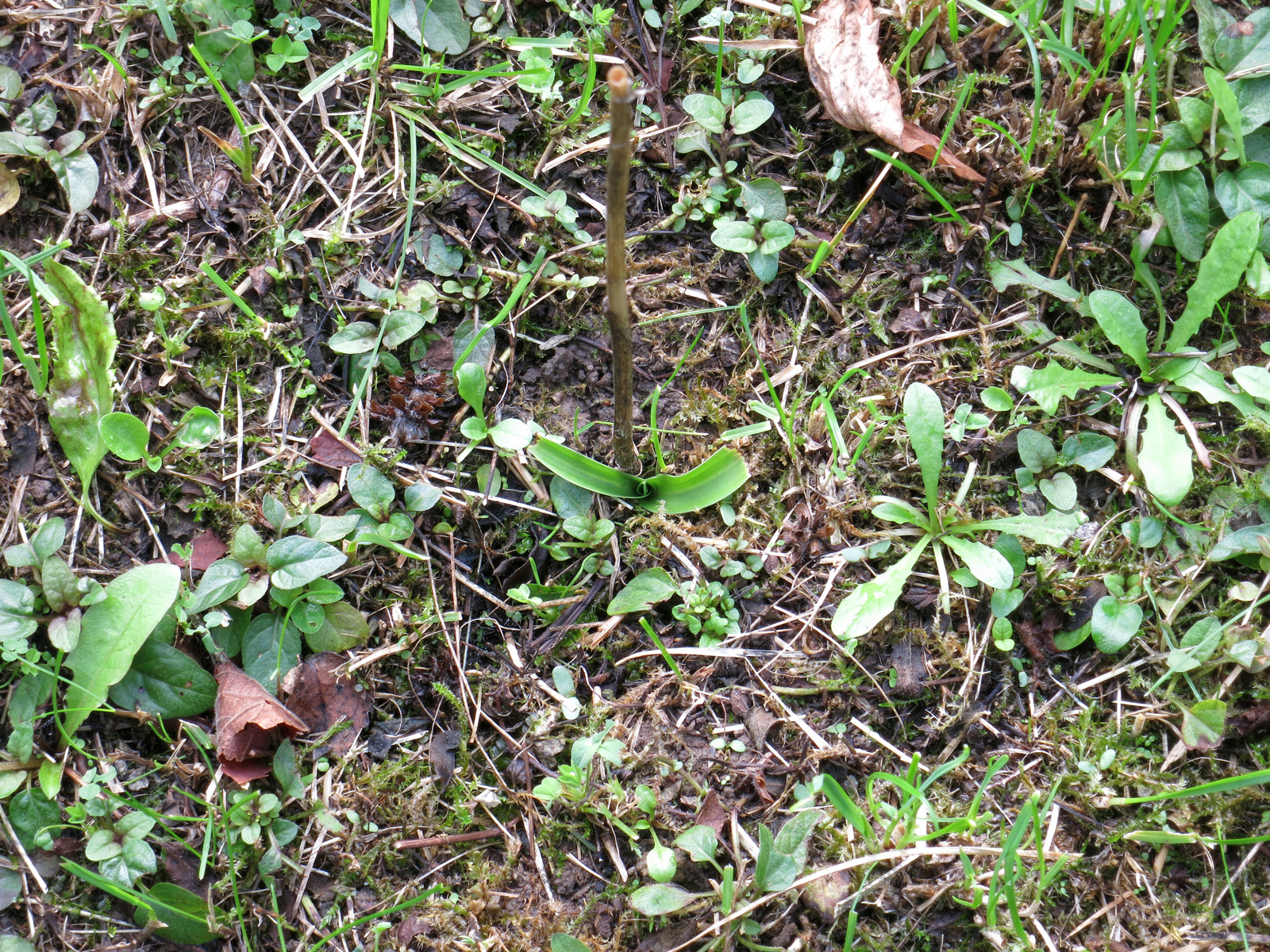 Die Orchidee hatte ich am 26. Mai des Dürresommers 2018 auf der Wiese des Vorgartens entdeckt und ihren Standort mit drei Holzstäben markiert. Im März/April des folgenden Jahres 2019 konnte ich diese unter Naturschutz stehenden Pflanze wiederfinden und ihre Entwicklung fotografisch dokumentieren. |