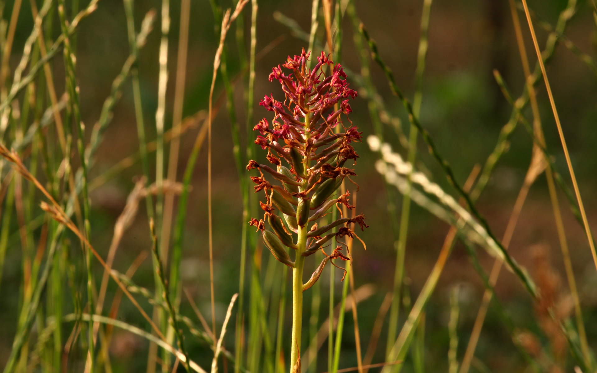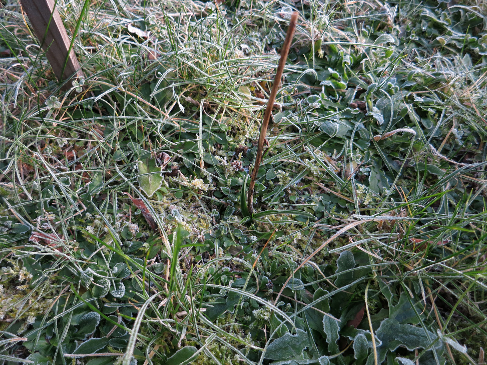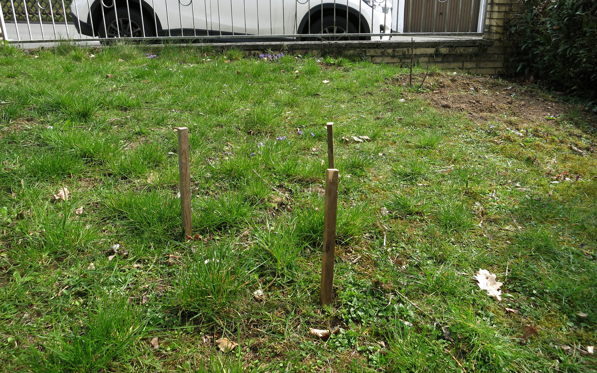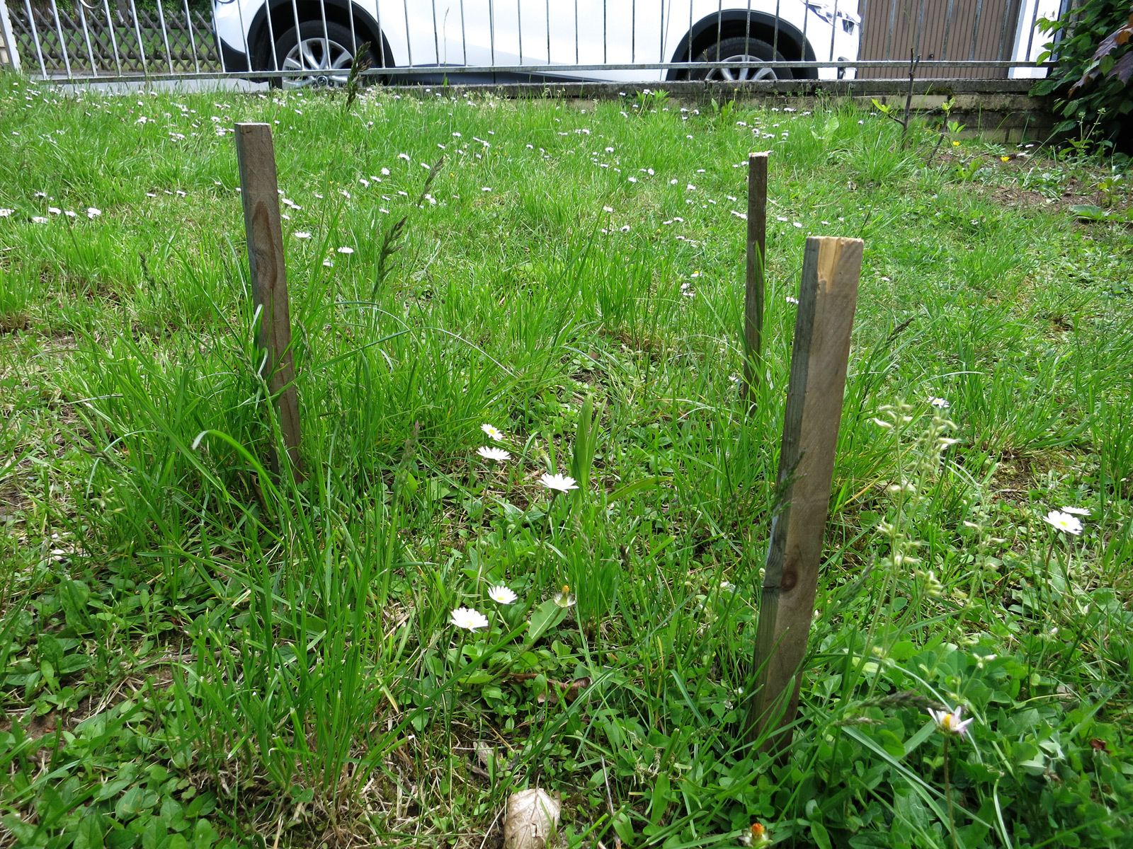 Die Orchidee hatte ich am 26. Mai des Dürresommers 2018 auf der Wiese des Vorgartens entdeckt und ihren Standort mit drei Holzstäben markiert. Im März/April des folgenden Jahres 2019 konnte ich diese unter Naturschutz stehenden Pflanze wiederfinden und ihre Entwicklung fotografisch dokumentieren. |