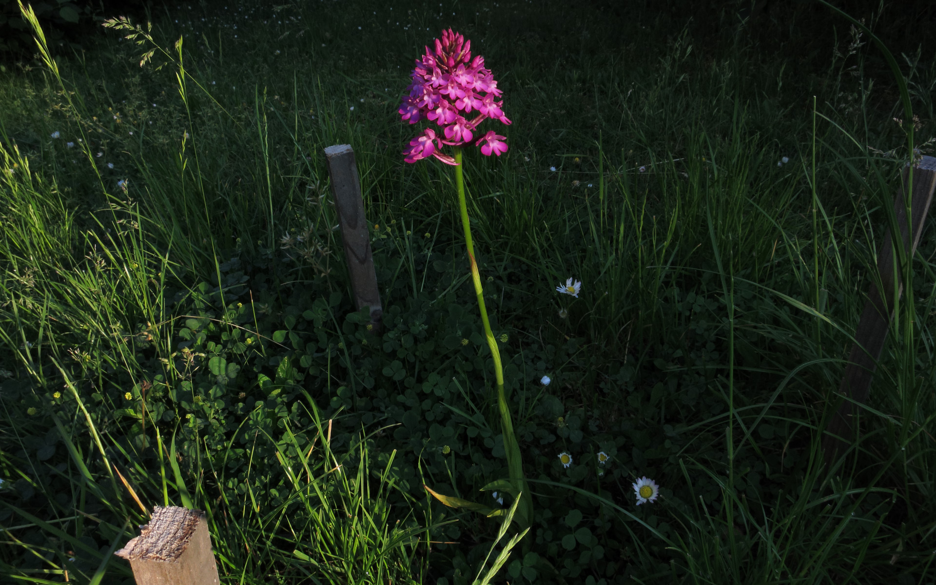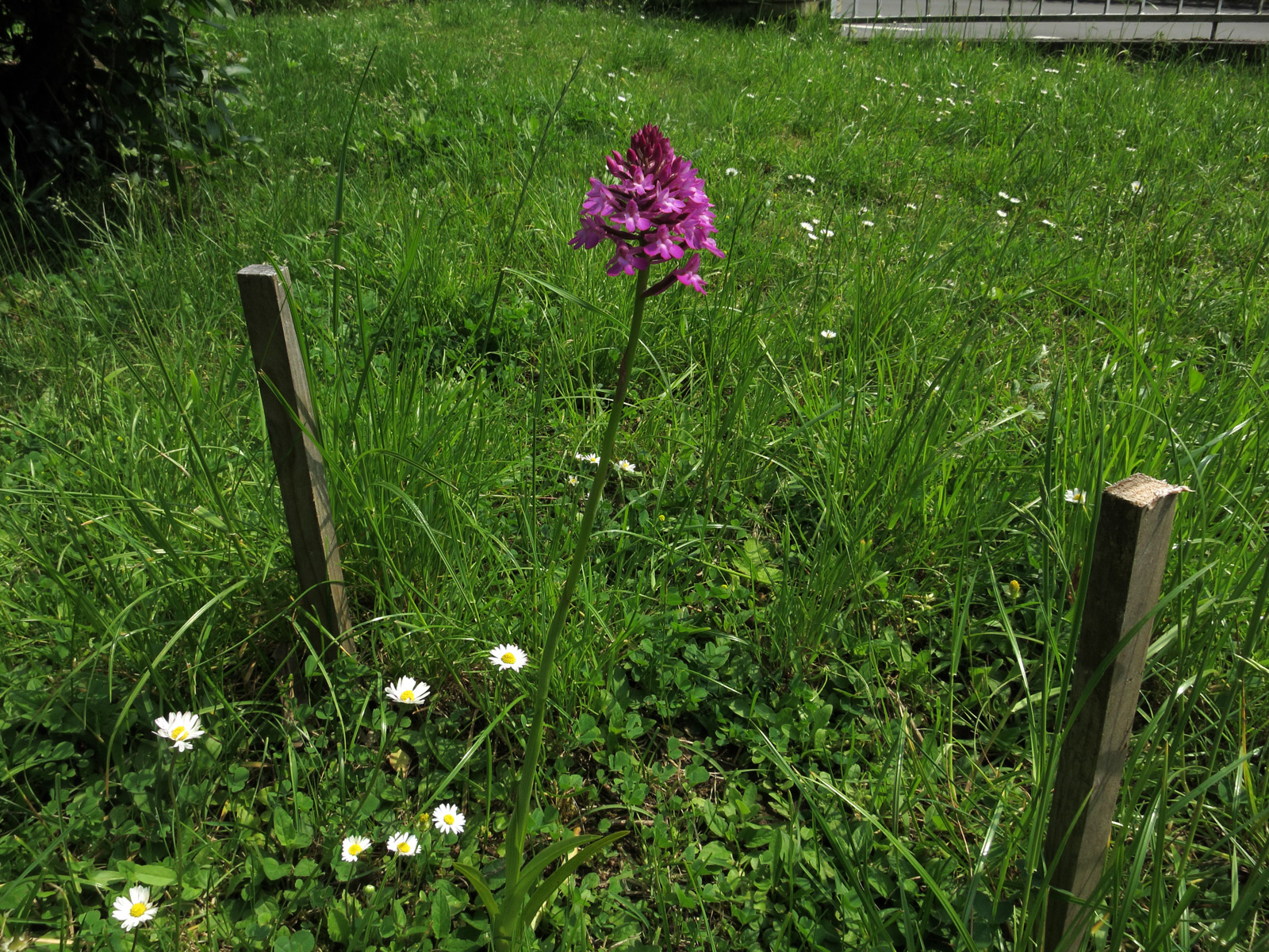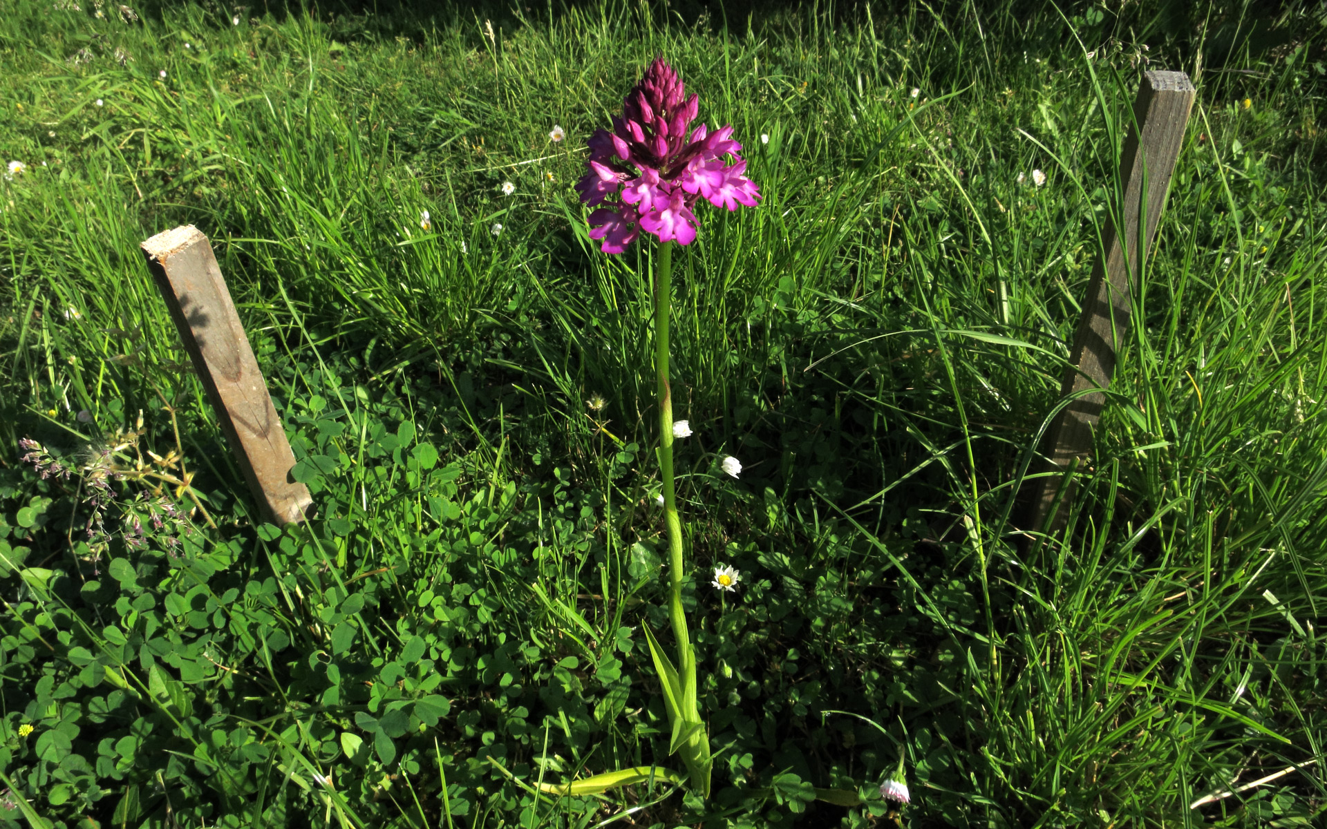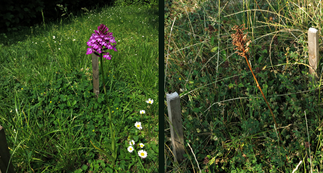 Das Bild links zeigt die Anacamptis pyramidalis am 4. Juni blühend