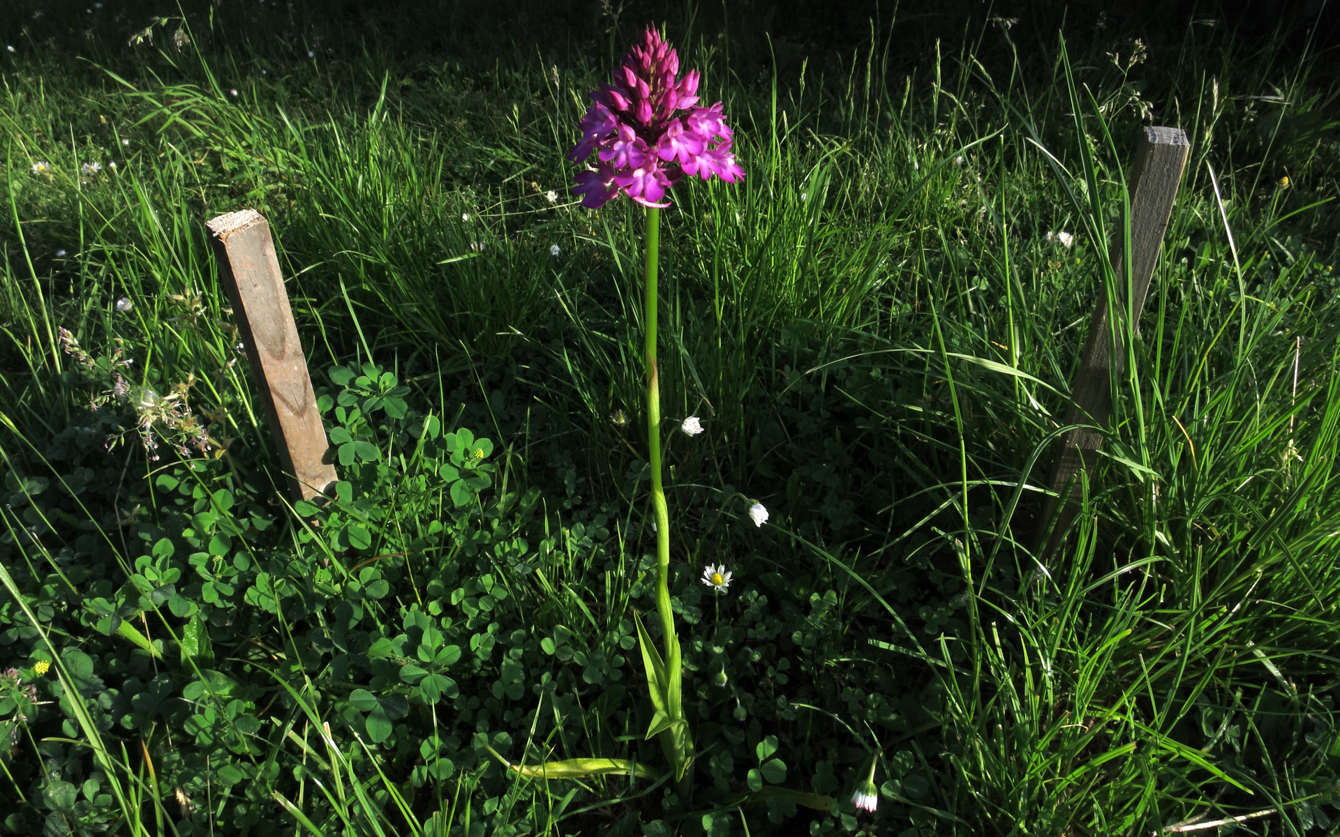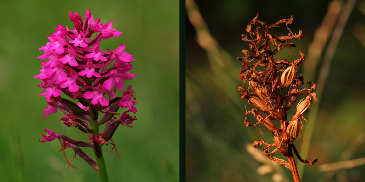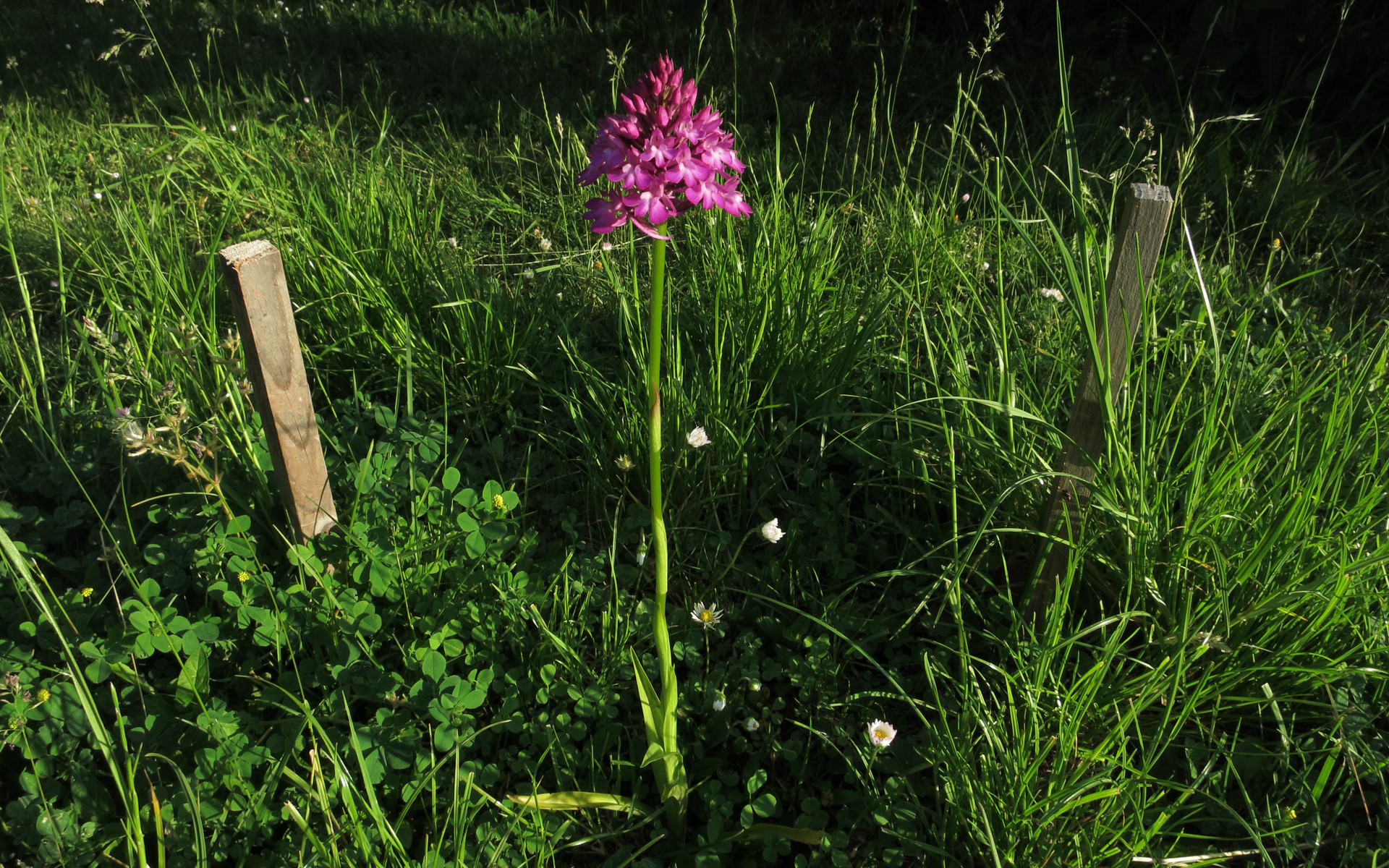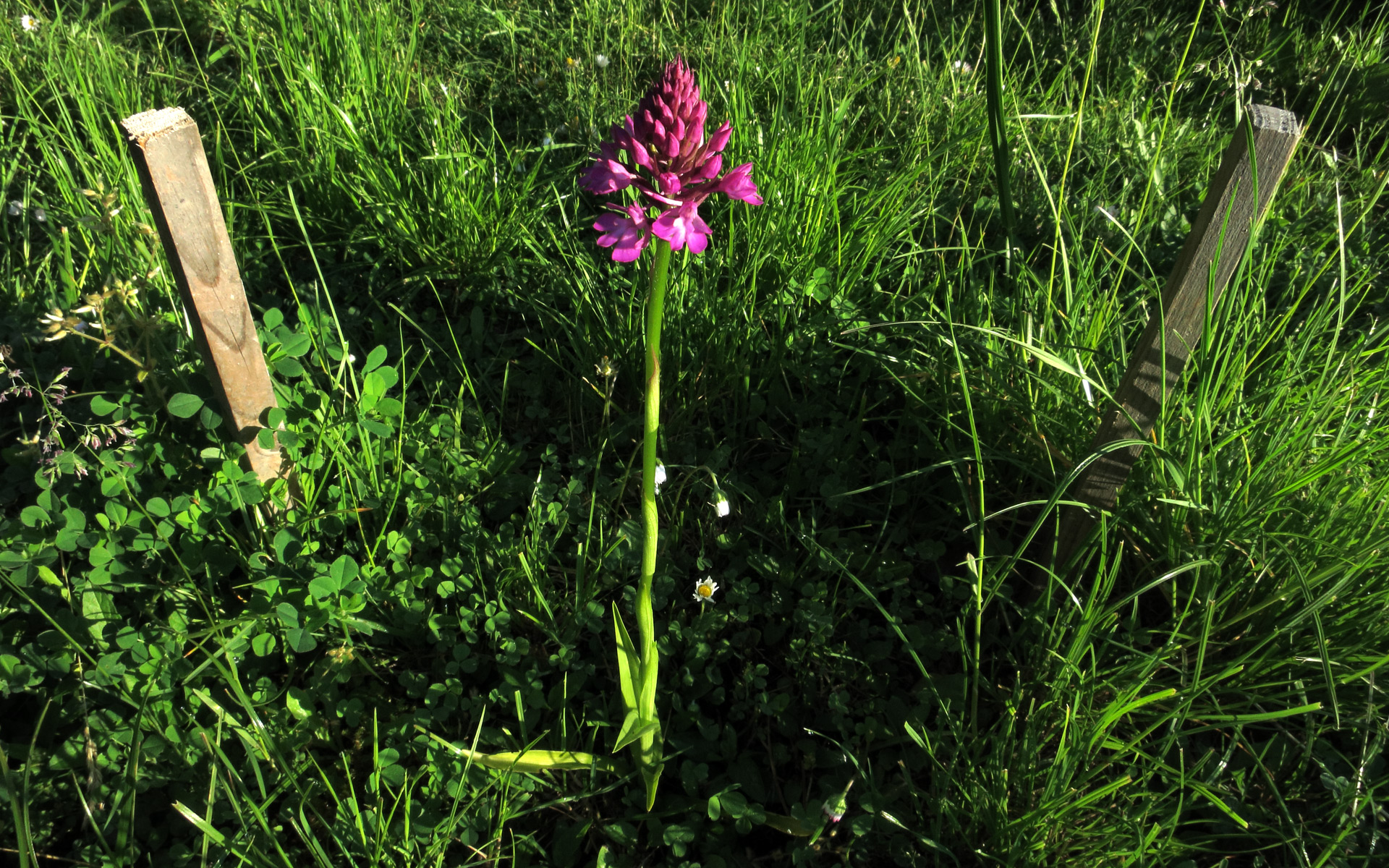Das Bild links zeigt die Anacamptis pyramidalis am 4. Juni blühend