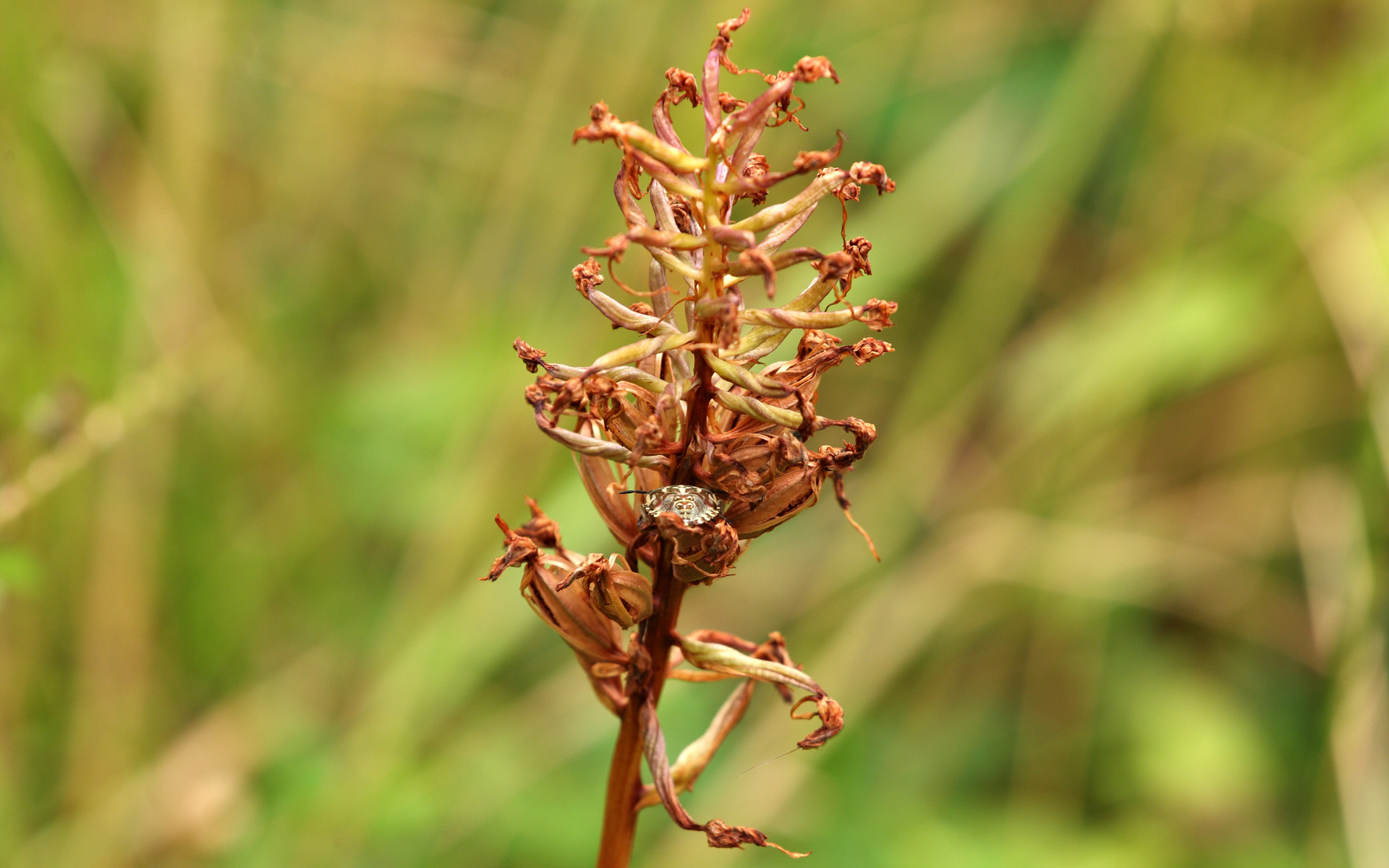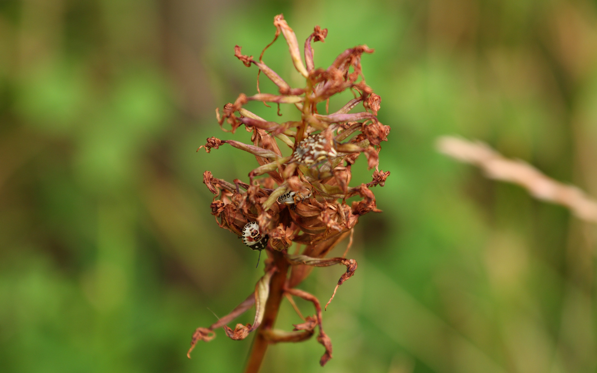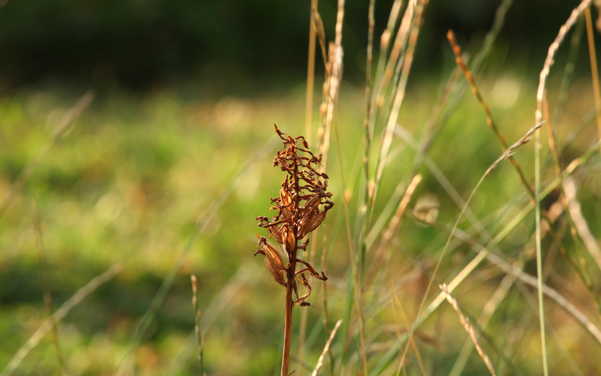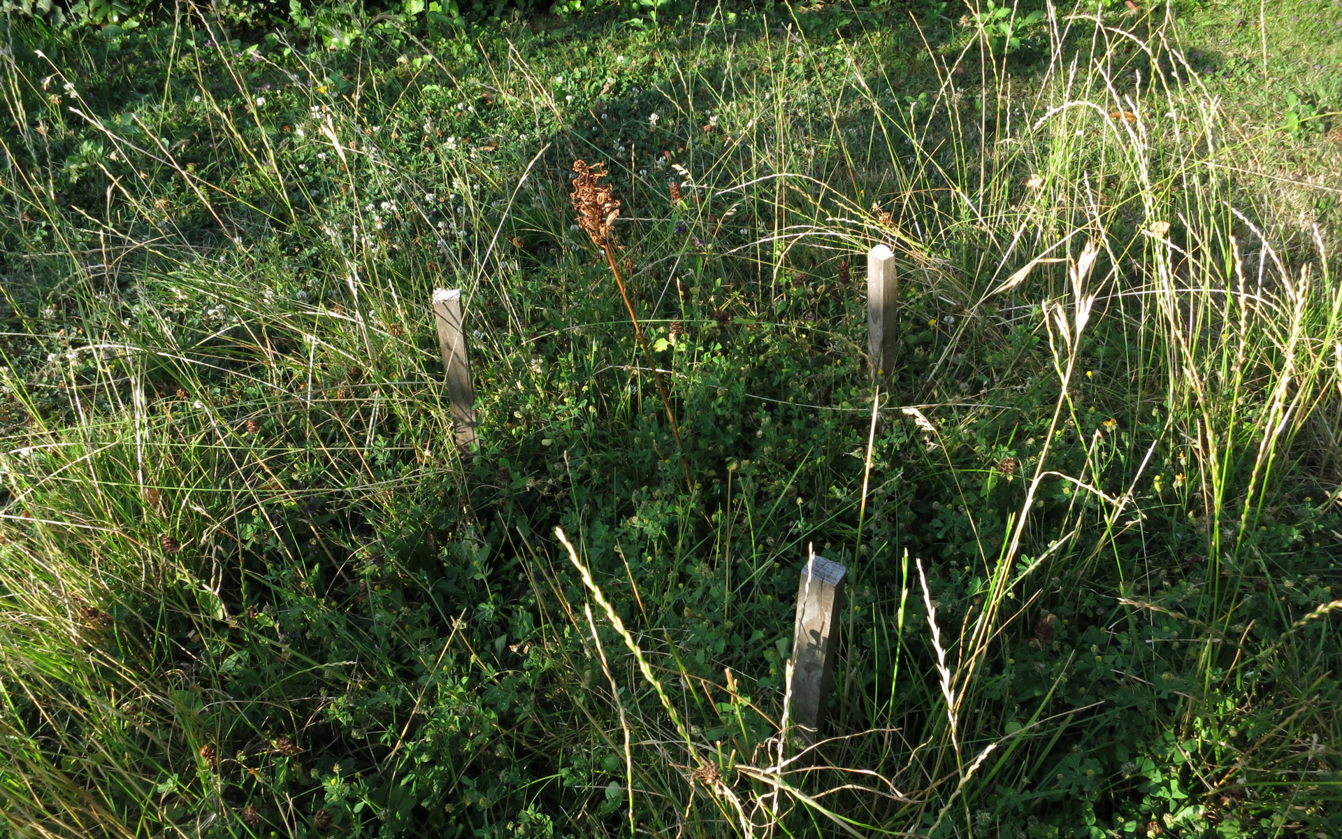 bzw. am 30. Juli im verblühten Zustand auf der Wiese.