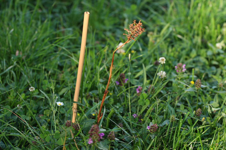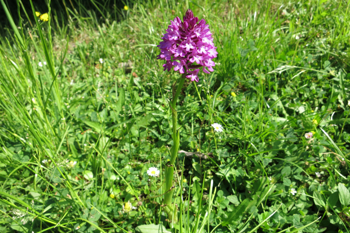 Das Foto unten zeigt die blühende Orchidee auf unserer Wiese.