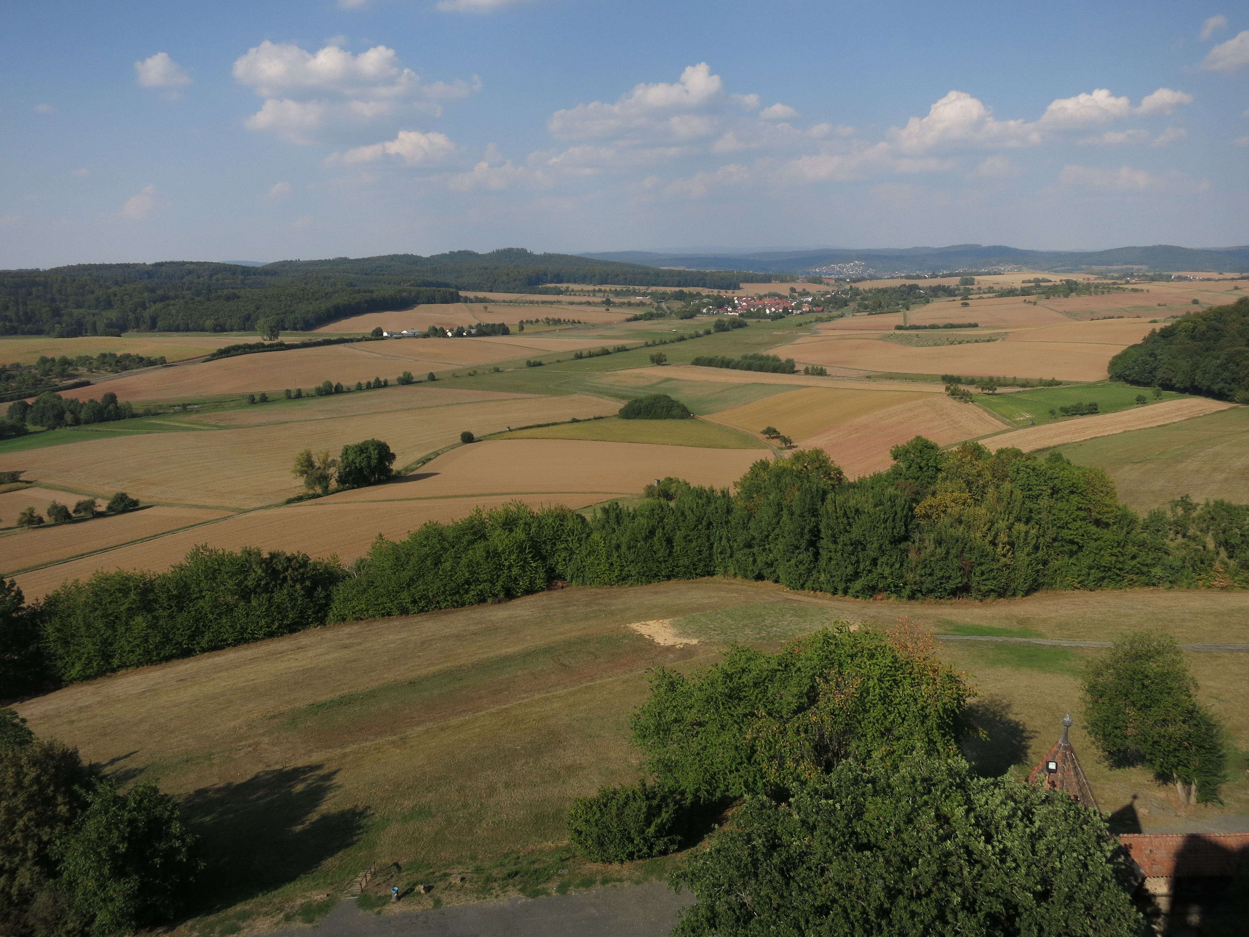 unten: Blick nach Westen mit Dünsberg am Horizont (OSM). Kamera: PowerShot S110, 26mm (max.Zoom).