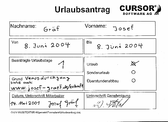 © 7. November 2001 by Josef Gräf, Venusdurchgang am 8. Juni 2004