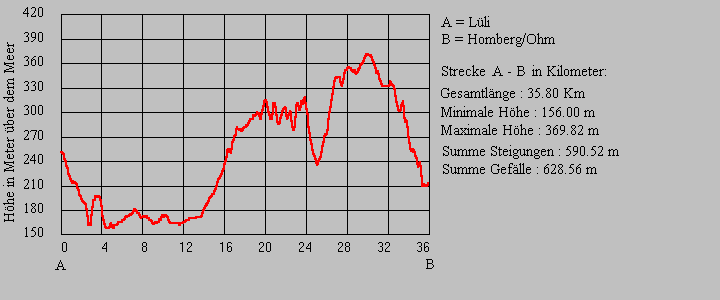 welche in Sonnenaufgangsrichtung (54°) liegt, hat folgendes Höhenprofil :